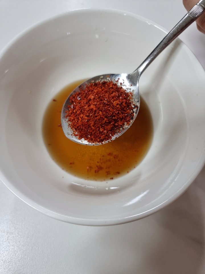 그 뒤엔 참기름을 준비해서 한스푼 채워서 넣어주세요!!