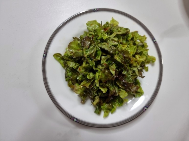 살살 버무려주시고 만약 넣은게 많이 달거나짜면 상추를 좀더 잘라서 넣어주시면 좋을거 같아요!!