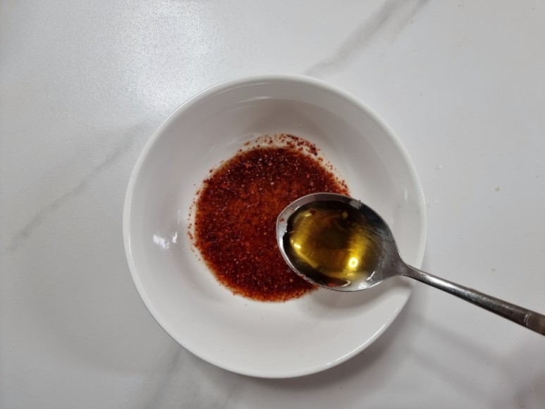 그 뒤엔 고춧가루를 한스푼에서 3분의 2스푼 넣어줘야되는데요!!