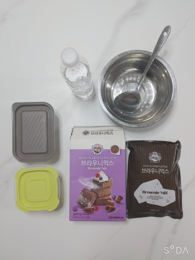 물 55ml, 반죽그릇, 주걱, 사각 전자레인지 용기, (백설)브라우니믹스