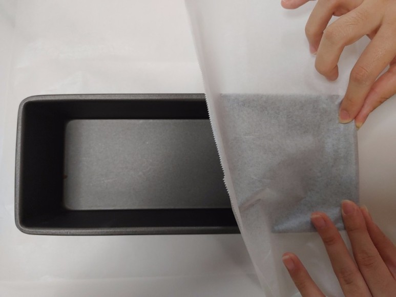 위에 사진엔 잘 안보이지만 자른 유산지를 깔아주시고 그 뒤에 파운드케익틀을 올려줍시다