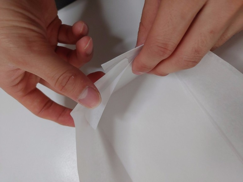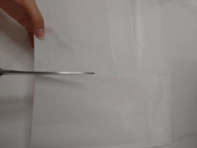 유산지를 왼쪽모양대로 바라보았을 때 맨 바깥쪽에 자국난 11자 모양만 아래 위로 잘라줄거에요!!