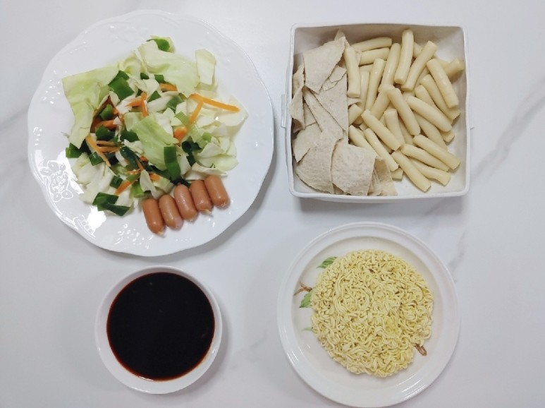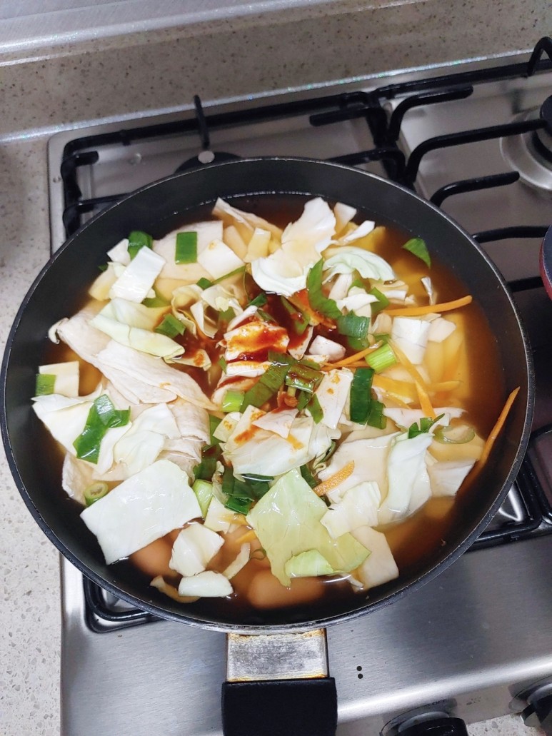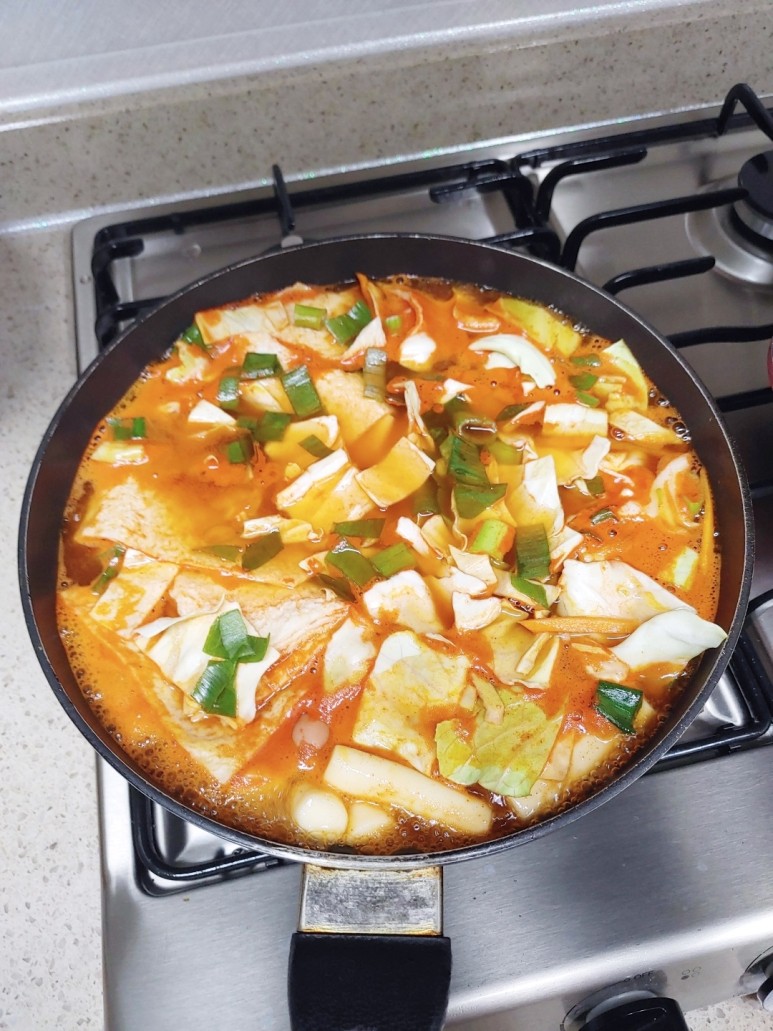 떡, 오뎅, 떡볶이 소스, 양배추,